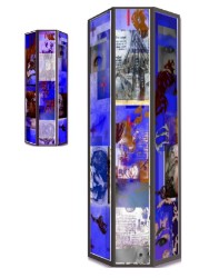 | Aussichten / Perspektiven Material:Float-Glasplatten für den Innenbereich, Siebdruck nach digitalen Vorlagen. (-im Beruflichen, wie Familiären, in der Freizeit, in den Träumen,……der Blick aus dem Fenster, die Arbeit, das Spiel am Computer, die Sonntagstorte , das allgegenwärtiges Handy, der Laptop, der Angler , das Meer, das Kalb, die Windenergie … Aussichten und Perspektiven…) „GLASOBJEKT“, Kreiskrankenhaus Finsterwalde, offener Wettbewerb, Oktober, 2003, Entwurf, nicht realisiert ![]() 6 Glasteile sind jeweils 2 x 200 cm = 400 cm hoch und 75 cm breit. Sie bestehen aus Sicherheitsglas ( Floatglas, das im Siebdruckverfahren mit den Motiven bedruckt und gebrannt wird) und einem Metallrahmen, der die Teile einfasst und hält. Das Glasobjekt wird auf und in einem Backsteinsockel befestigt von innen hinterleuchtet. Die Bildelemente für das Glasobjekt setzen sich aus Bildzitaten und–Auszügen aus den anatomischen Zeichnungen Leonardo da Vincis zusammen. Die Bildcollagen spielen auf die ewig währende Verbindung von Medizin und Kunst, die gerade in den Zeichnungen da Vincis ihren Ausdruck finden, an. „Augen schauen einen an, Chemische Zeichen-Zellen und Rote Kreuze, Symbol für die zu erwartende Hilfe,… stehen neben den anatomischen Fragmenten auf der Bildsäule, ein Kopf schaut einer Biene hinterher….Die Bildelemente sind zum Entdecken, Verweilen und im besten Fall zum Nachdenken da. |